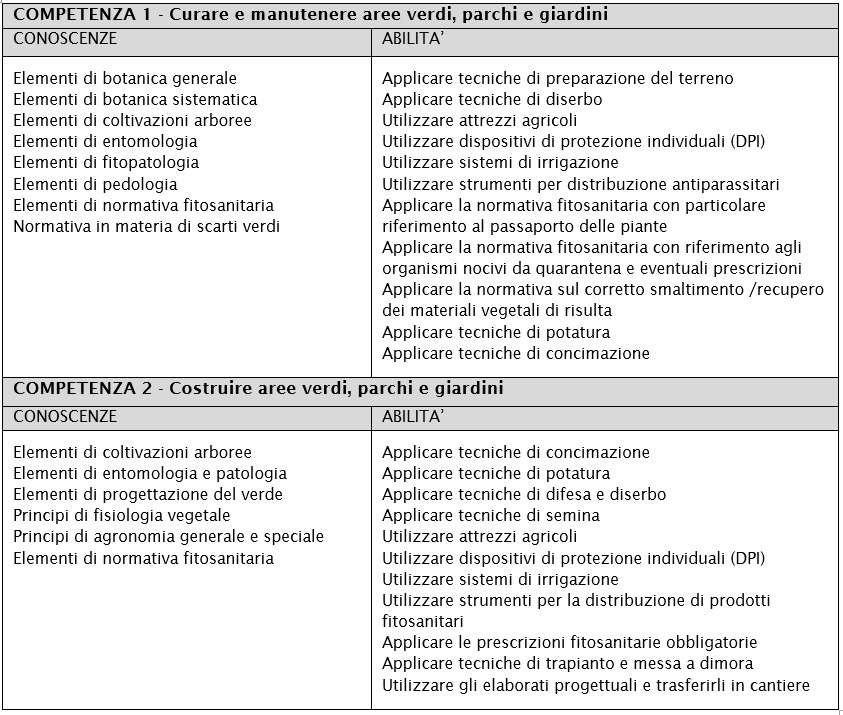 Competenze del Manutentore del verde
