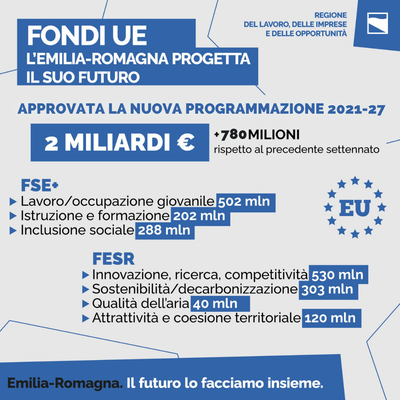 Costruire un nuovo futuro. Con risorse per oltre 2 miliardi di euro, la Regione Emilia-Romagna inaugura la nuova programmazione dei Fondi europei per il 2021-2027: 780 milioni di euro in più rispetto ai sette anni precedenti.